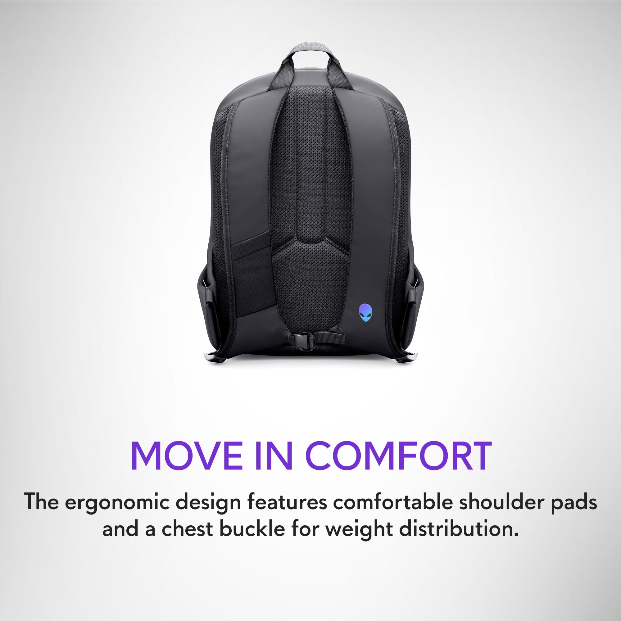 - Undeniably alien: The 3D reflective Alienware logo tosses iridescent colors when illuminated, while gradient aura zipper pullers provide night visibility.